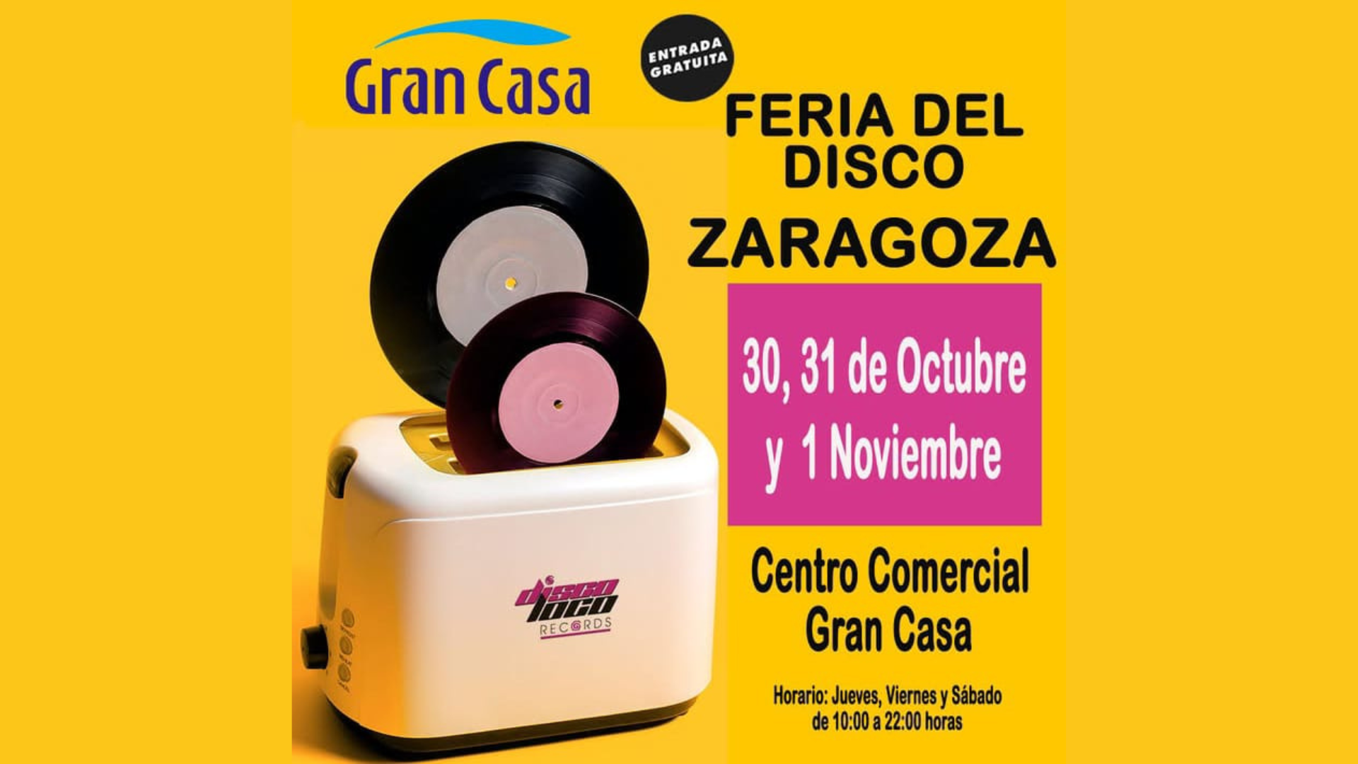 El Centro Comercial GranCasa acoge una nueva edición de la Feria del Disco de Zaragoza, una cita imprescindible para coleccionistas, melómanos y cualquier curioso que quiera sumergirse en la cultura musical. 🎶
