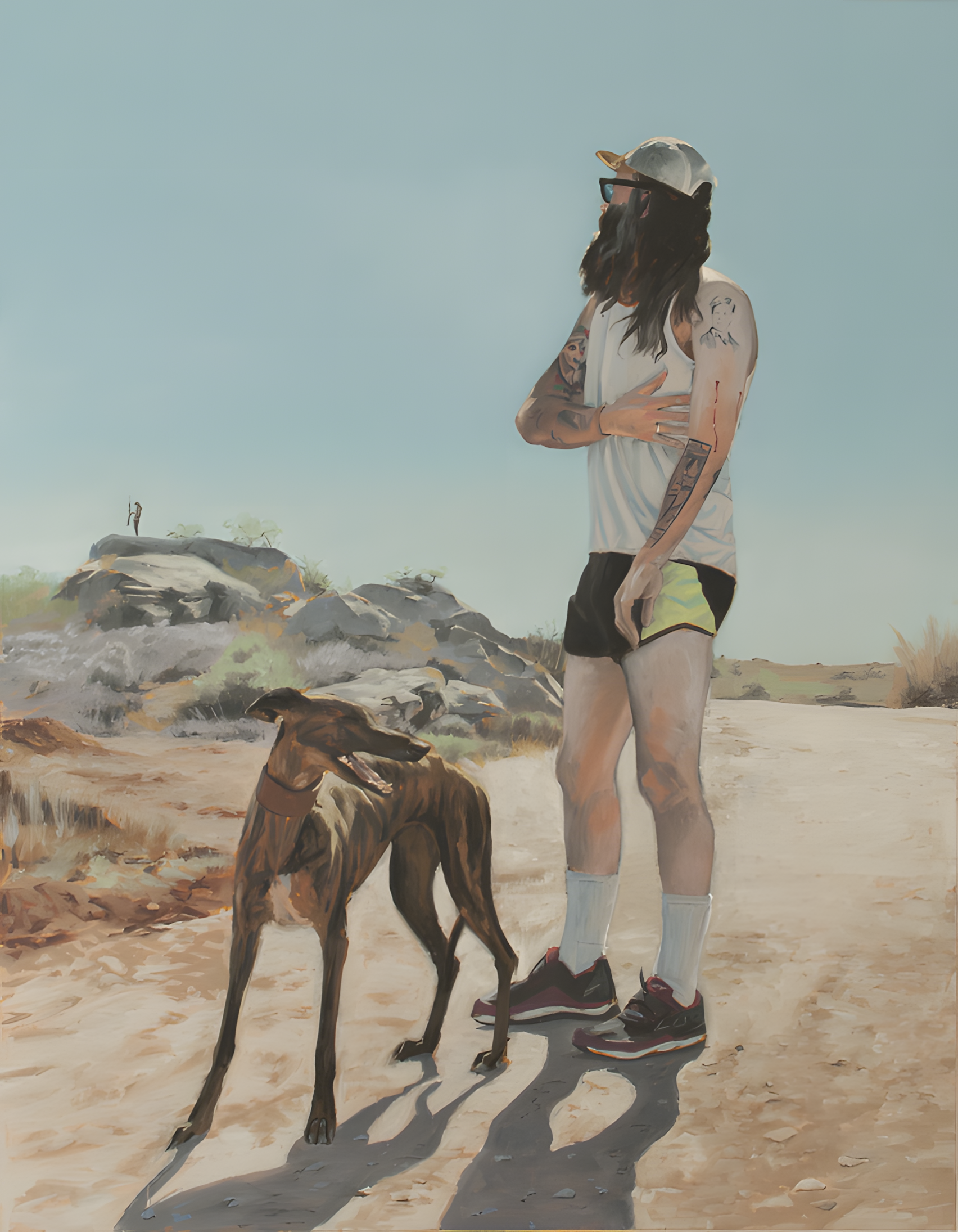 A cielo descubierto y en paisajes al margen, Javier Aquilué presenta una galería singular de personajes que habitan un relato escenificado donde realidad y ficción se entrelazan. Las sombras que proyectan los cuerpos se convierten en clave para enfocar la imagen representada, en una reflexión sobre la supervivencia de las imágenes en el arte contemporáneo. Con su teoría del "Ojo Vago", Aquilué destaca el valor productivo de lo disfuncional, explorando lo precario y lo inestable como valores protagonistas en su obra de profunda conciencia social, ética y política.