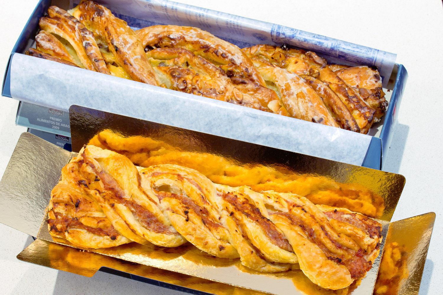 Su producto más reconocido es la Trenza de Almudevar. Se trata de un producto bollería hojaldrada, sin ningún aditivo, con una fermentación muy larga, rellena de pasas, almendras, nueces, y con un hojaldrado de mantequilla.