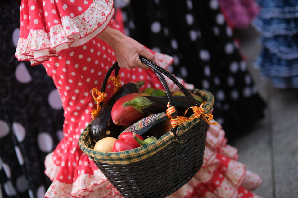 Cientos de personas, ataviadas con los trajes típicos de sus regiones, recorren el centro de la ciudad para ofrecer a la Virgen una gran variedad de alimentos como frutas, hortalizas, repostería, jamón y mucho más. Es un acto tradicional que se remonta a 1949, y que cada año gana en vistosidad y participación. Los productos recolectados, que en 2019 superaron las 7 toneladas, tienen un fin solidario y se reparten entre comedores sociales.