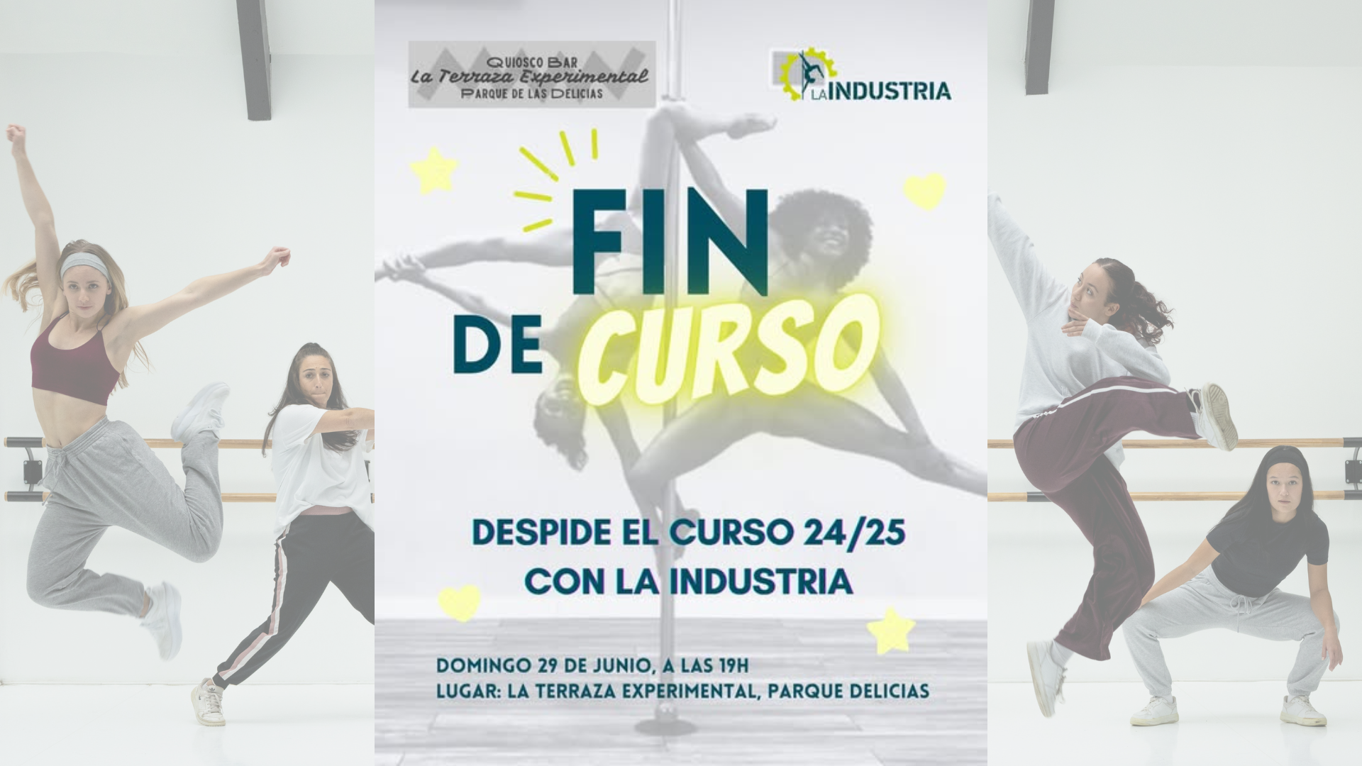 ¡Ven a celebrar el cierre de un curso lleno de retos, aprendizajes y mucho flow con "La Industria del Pole" en La Terraza Experimental! 🌟 El domingo 29 de junio de 2025, a las 19:00 h, las alumnas y profesoras compartirán improvisaciones y movimientos libres, mostrando todo lo aprendido durante el año. 🎶