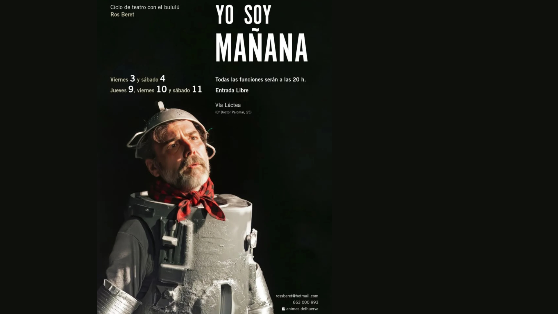 ¡Un planazo para empezar y seguir las Fiestas del Pilar! 🎭😂 El espaciocolectivo_via_lactea acoge a Ros Beret con su espectáculo de "Cultura popular en las fiestas del Pilar". Con una pinta que evoca la locura ("con un colador en la cabeza y pinta de huido de un psiquiátrico"), Ros Beret llega con el objetivo de hacernos reír y hacernos pensar. El espectáculo se podrá disfrutar en múltiples fechas a las 20:00 h y, lo mejor de todo, con entrada libre.