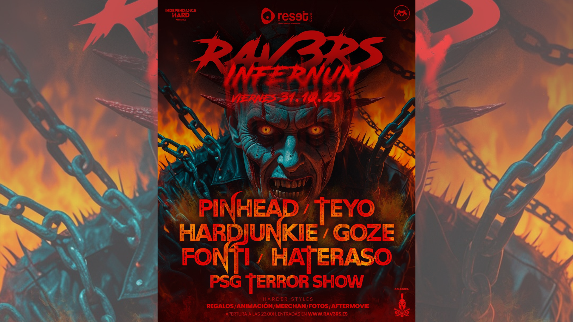 RAV3RS te invita a la noche más oscura del año con INFERNUM, su fiesta de Halloween que abrirá las puertas del infierno en Reset Club de Zaragoza. 😈