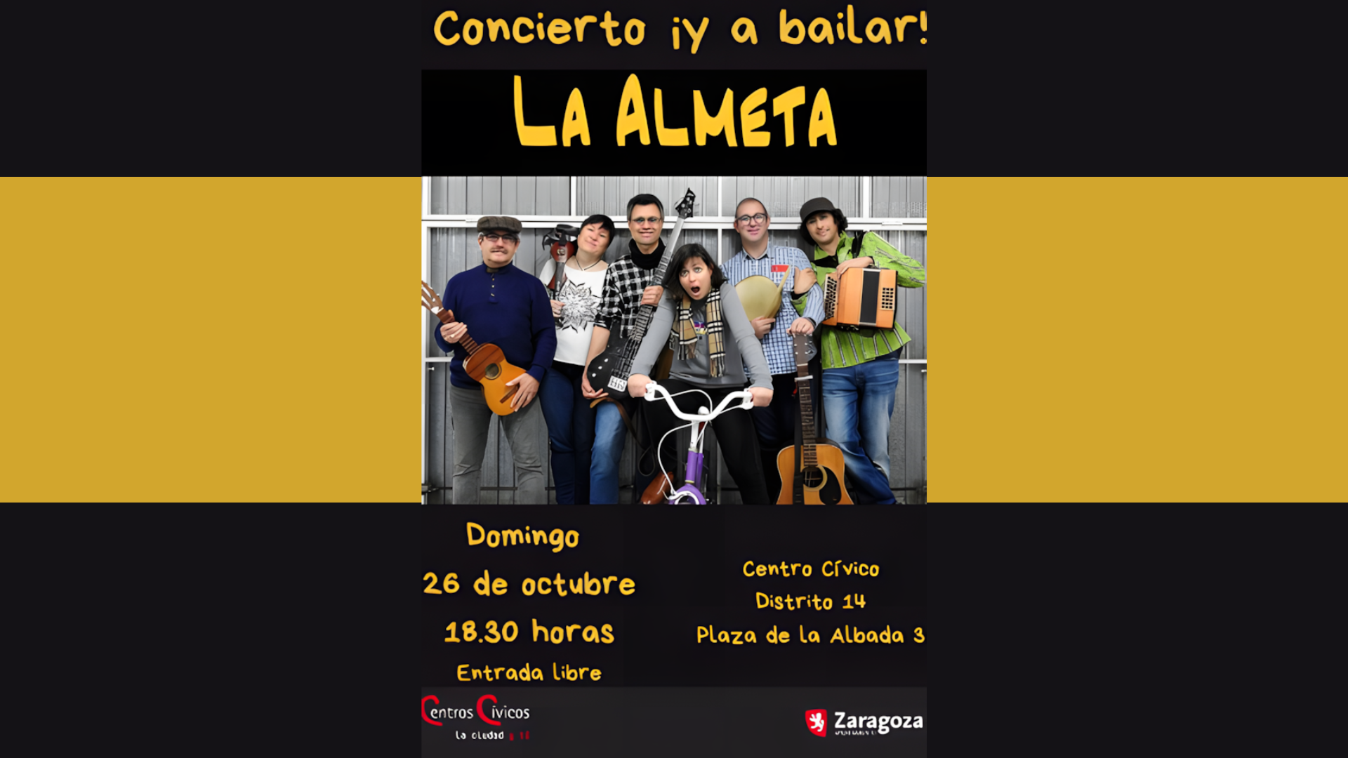 El Centro Cívico Distrito 14 (La Jota) presenta el concierto de LA ALMETA, una cita musical con el lema claro: "¡y a bailar!". 🕺💃