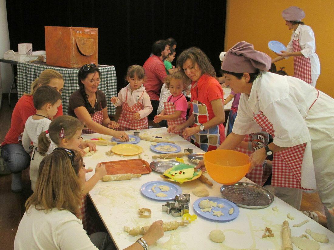 Durante un período de 60 a 90 minutos, la plaza del centro se transforma en una improvisada panadería. Se ponen a disposición del público kilos de masa y harina para que, en mesas de trabajo y con instrumentos para amasar y modelar, las familias creen sus propios panes, rosquillas, magdalenas y galletas.