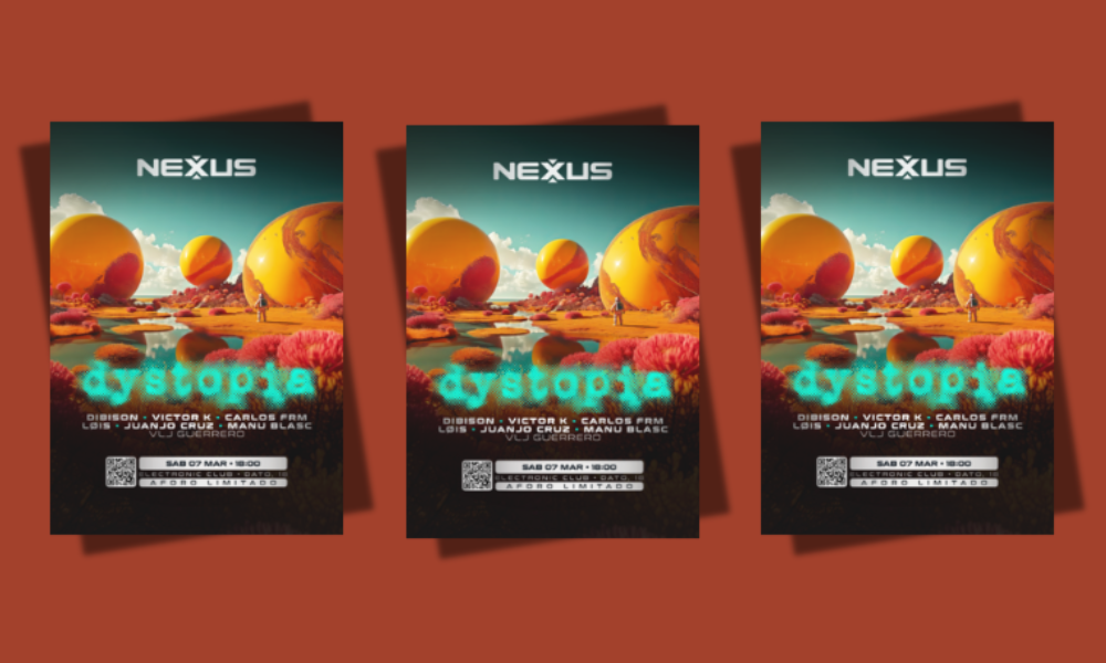 La tarde se transforma en territorio electrónico con DYSTOPIA, una sesión pensada para sumergirte en sonidos contundentes y atmósfera de club. Nexus abre sus puertas para una jornada intensa que promete pista llena desde el primer beat.